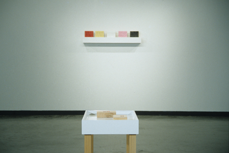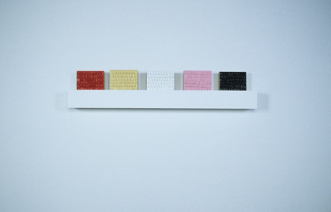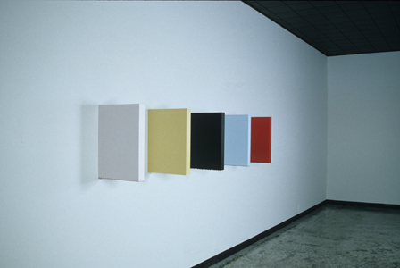 The Scallop (detail) from the series The Basics. 2003 In debut pink, camel, black, sky & scarlet Latex paint on wood panel Five panels each 22” x 2 ¾” x 16” |