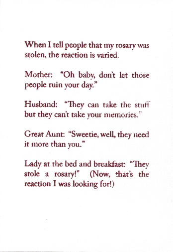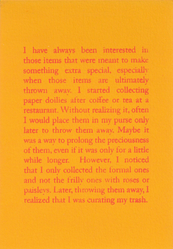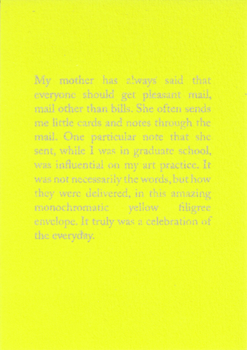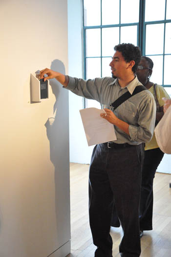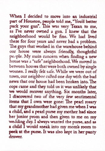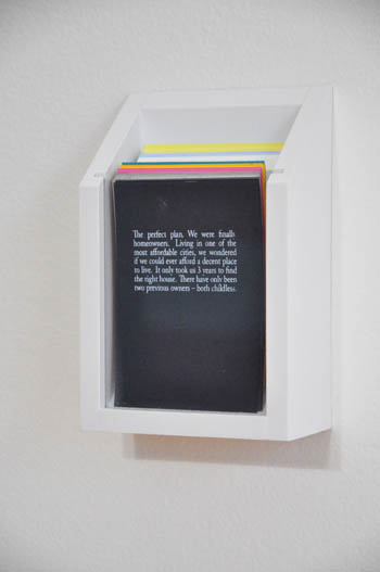 Viewer taking printed matter. Installation at Space125 Gallery in Houston, TX.